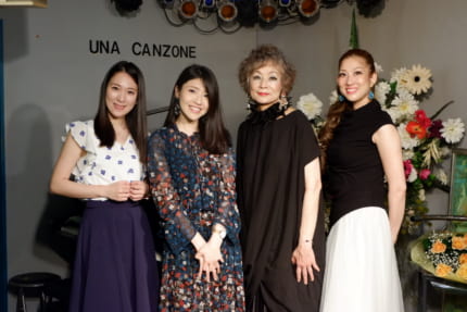 左から薮内彩奈ちゃん、私、友部裕子さん、上村マキちゃん。