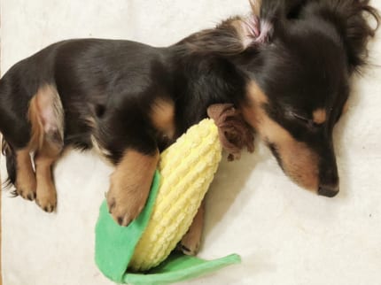 トウモロコシを抱いて寝ておりました♫