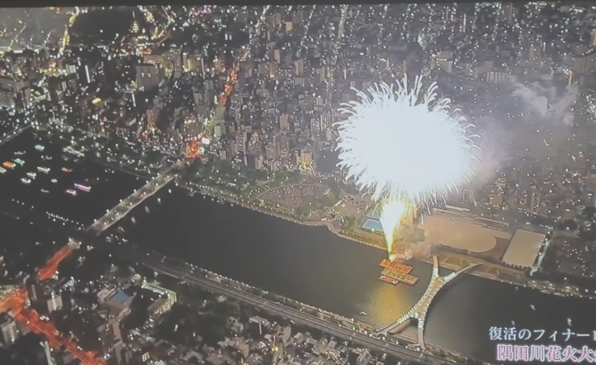 そしてリハが終わって家に帰ってきてから隅田川花火大会をせっかくだからプロジェクターで見てみたらすごい迫力でした(^^) そしたら外からドーンという音が聞こえて見てみたら花火が上がっててびっくり!