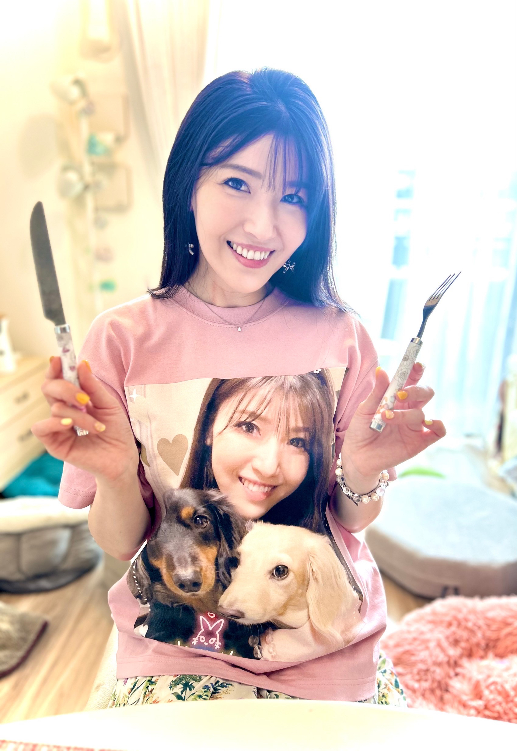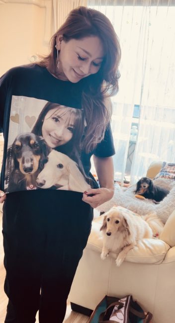 うちについてちょっと手洗わせてねと洗面に行って出てきたら、なんと私とバロガルの写真入りTシャツ着てて今年一番というくらい大笑いしてしまった!