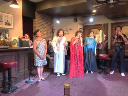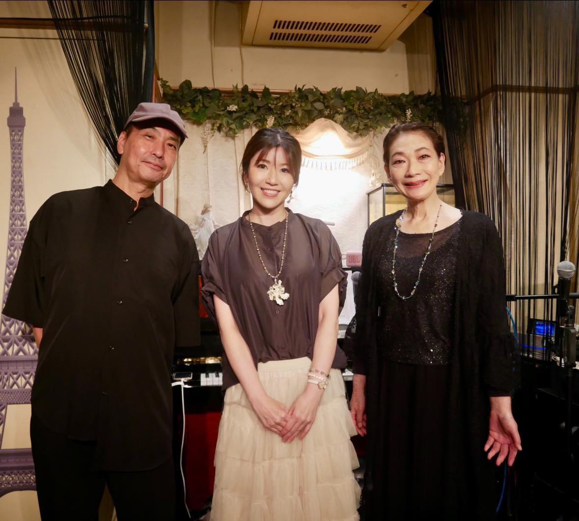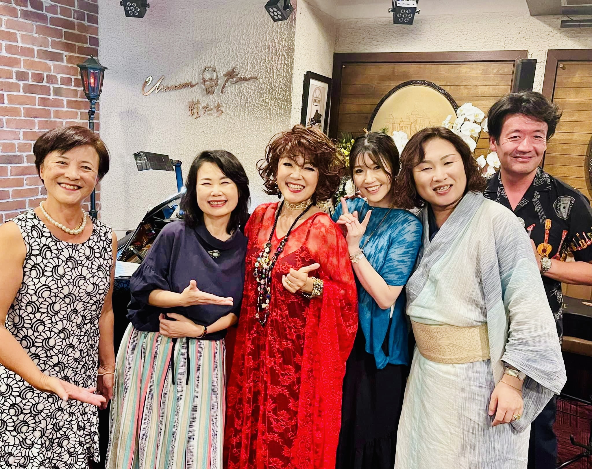 左からマダムゆみさん、ピアノ江口純子さん、浜砂伴海さん、私、大輔くん、髙野ピエールさん(^^)