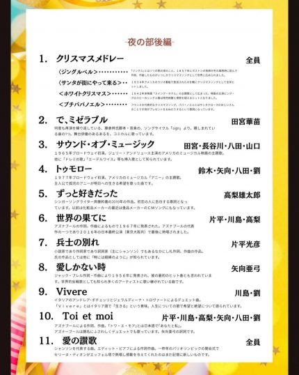 主催のみんなの音楽会はもとより、構成演出の矢向亜弓ちゃん、素晴らしい出演者,ミュージシャンの皆さん、