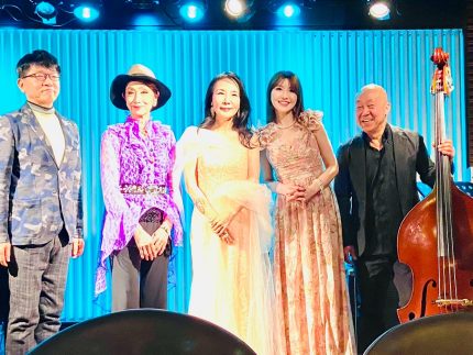 ライブは友納あけみさん、野崎由美子さん、ピアノ高島正明さん、ベース和田弘さんでお送りしました((o(^∇^)o))